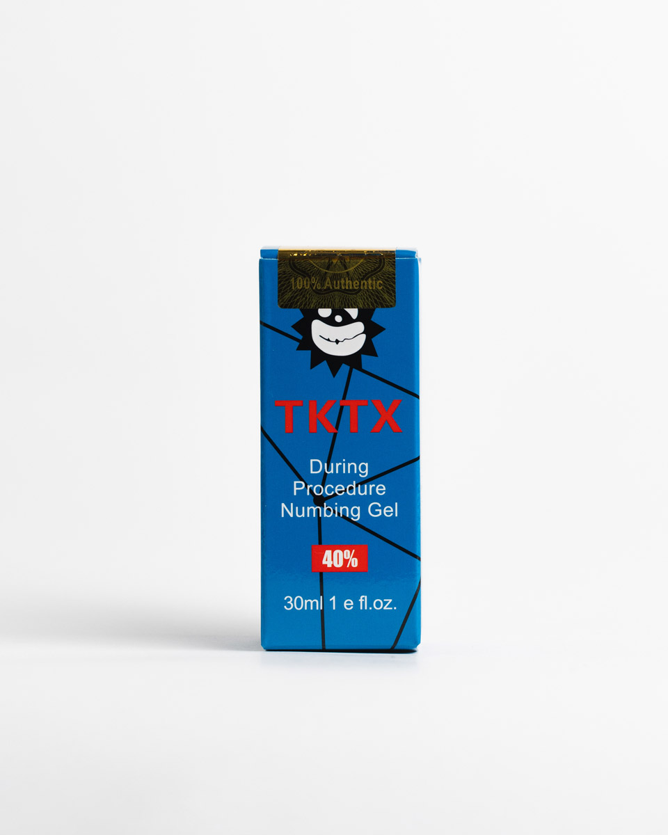 TKTX Mid Procedure Gel is designed for use during tattoos on broken skin, following the initial application of TKTX Numbing Cream on unbroken skin. (Note: Do not reapply TKTX Cream on broken skin with this gel.)